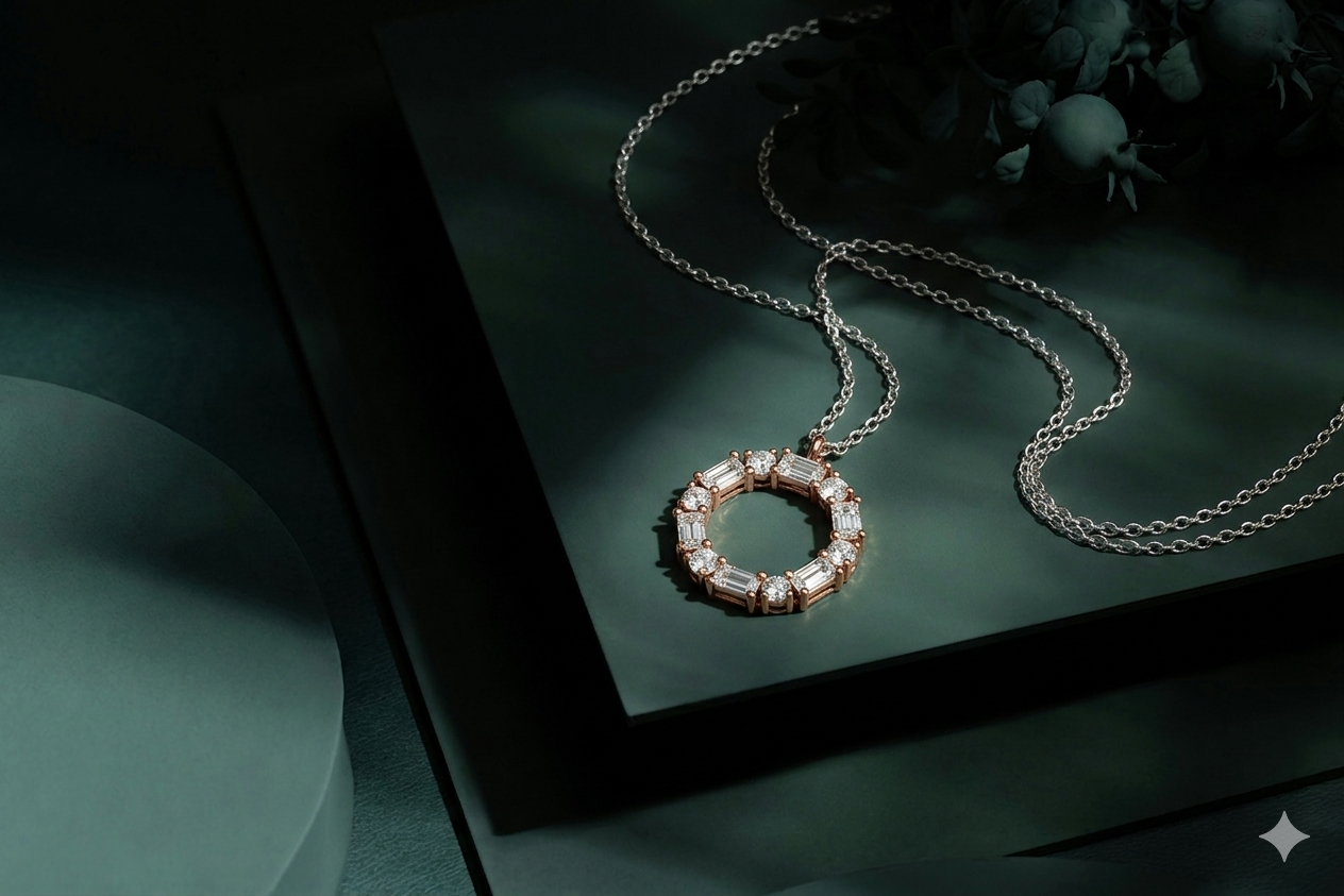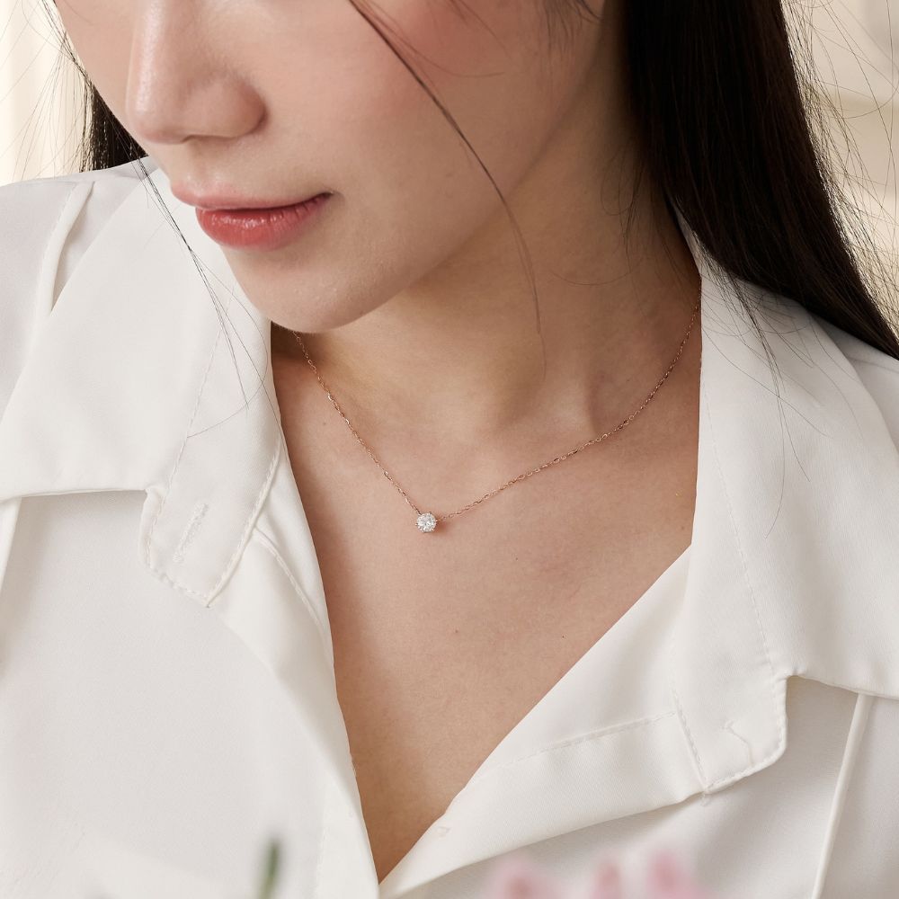 以 18K 金與培育鑽打造疊戴層次,點亮頸間柔美光暈。
